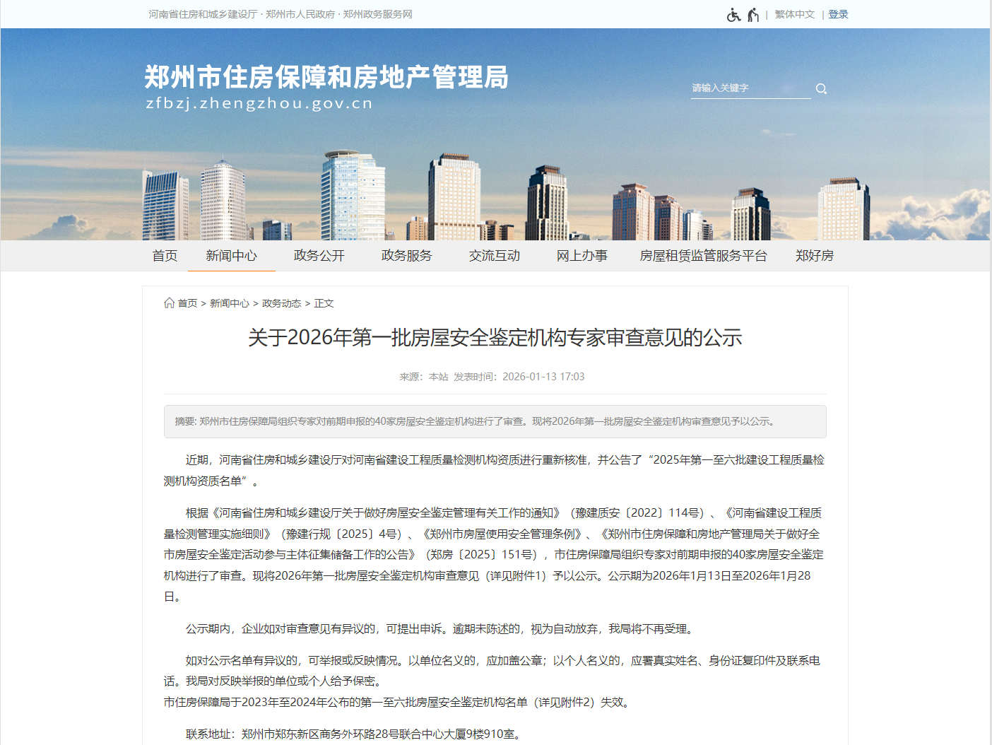 开封市房屋安全鉴定机构名录登记证书